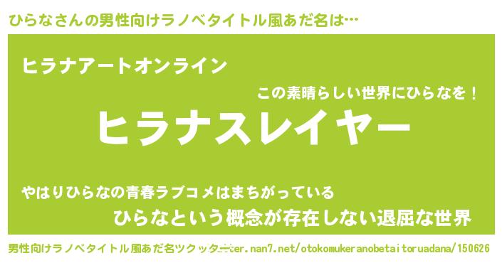 | 胡散臭い通販商品みたいなあだ名 | 『必ず成功する霊験あらたかなお札…その名も「ひらな」』 |