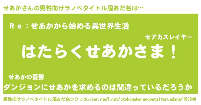 | 意味不明あだ名 | 『自称せあか』『とにかく怪しいせあか』 |