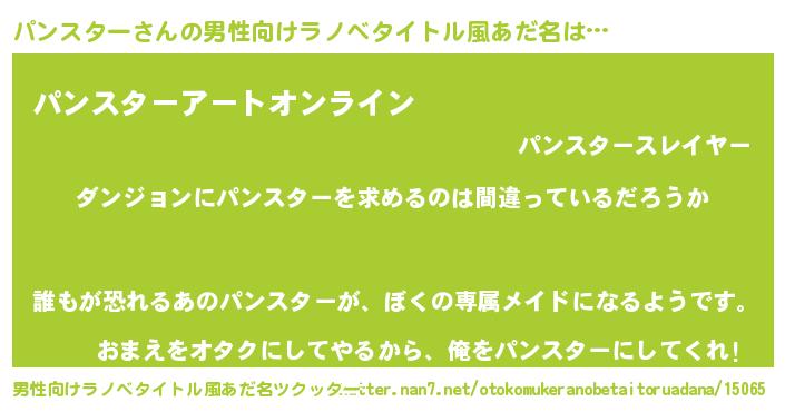 | 女子向けラノベタイトル風あだ名 | 『パンスターの卵を拾いまして』 |