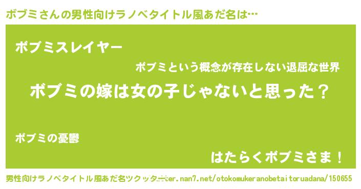 | 女子向けラノベタイトル風あだ名 | 『ボブミ様がみてる』『ボブミの契約王妃』 |