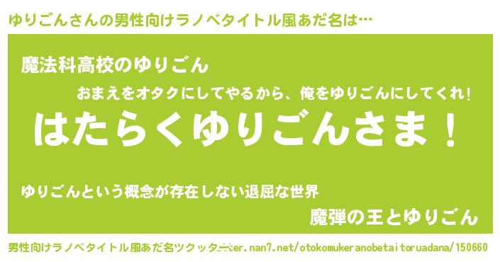 | ヘコむあだ名 | 『ゆりごん(笑)』『ゆりっぺ』 |