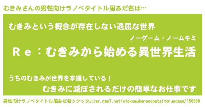 むきみさんの男性向けラノベタイトル風あだ名をツクッター!