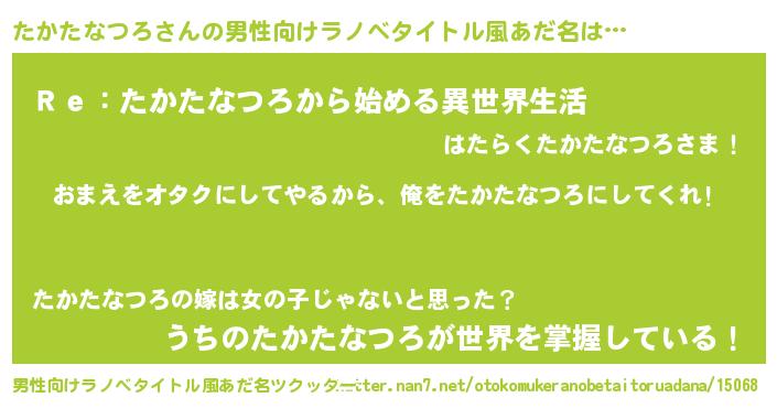 | ヒーロー風カッコイイあだ名 | 『正義の使者たかたなつろ』 |