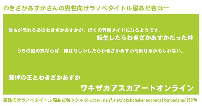 | 意味不明あだ名 | 『わきざかあすかフォーエバー』 |