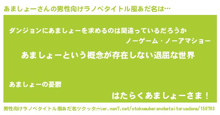 | 意味不明あだ名 | 『永久保存あましょー』 |