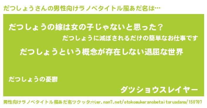 | 胡散臭い通販商品みたいなあだ名 | 『絶対に幸福をもたらす水素水…その名も「だつしょう」』 |