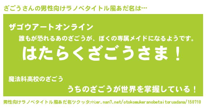| 胡散臭い通販商品みたいなあだ名 | 『モテモテ間違いなしブレスレット…その名も「ざごう」』 |