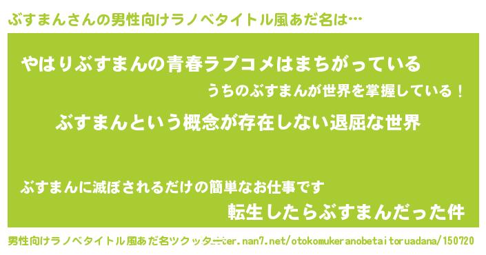 | 女子向けラノベタイトル風あだ名 | 『ぶすまんの契約王妃』 |