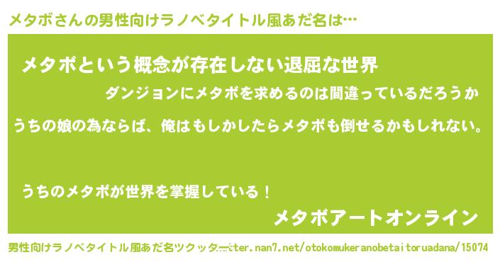 | 女子向けラノベタイトル風あだ名 | 『メタボの婚約者』 |