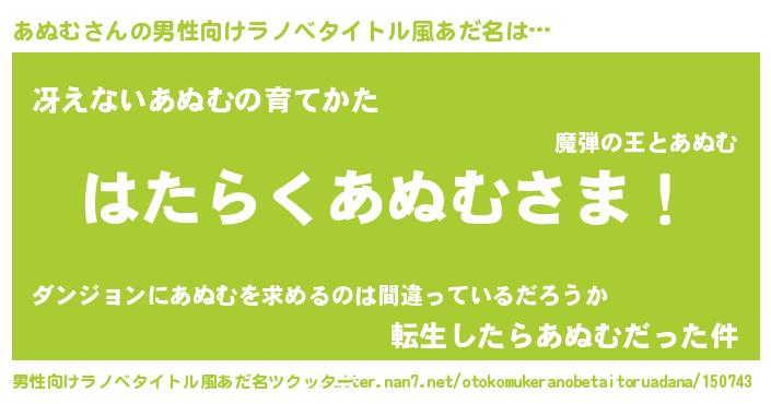| 意味不明あだ名 | 『エリンギ科あぬむ属』『ペロリンあぬむ』 |