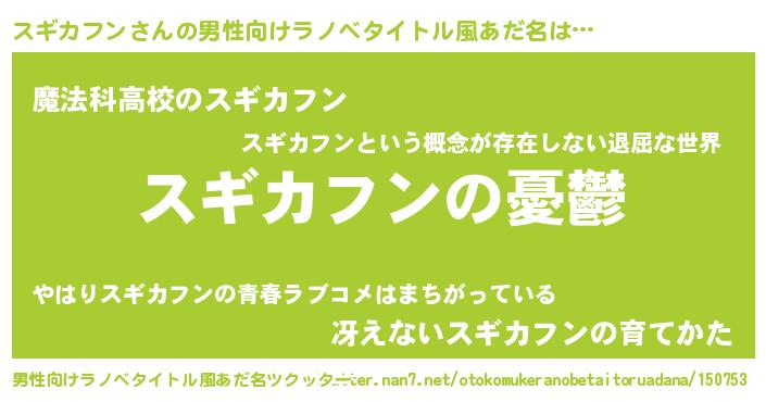 | 胡散臭い通販商品みたいなあだ名 | 『必ず成功する霊験あらたかなお札…その名も「スギカフン」』 |