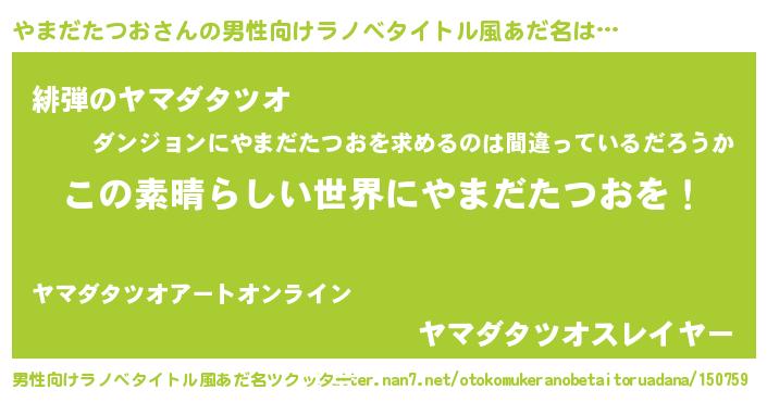 | 胡散臭い通販商品みたいなあだ名 | 『あなたにだけ特別に提供する世界で10本だけ現存している希少なブランデー…その名も「やまだたつお」』 |
