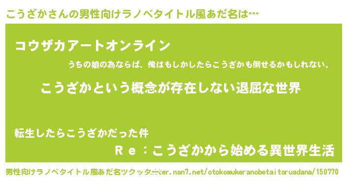 | 胡散臭い通販商品みたいなあだ名 | 『来世でも幸せになれる健康食品…その名も「こうざか」』 |