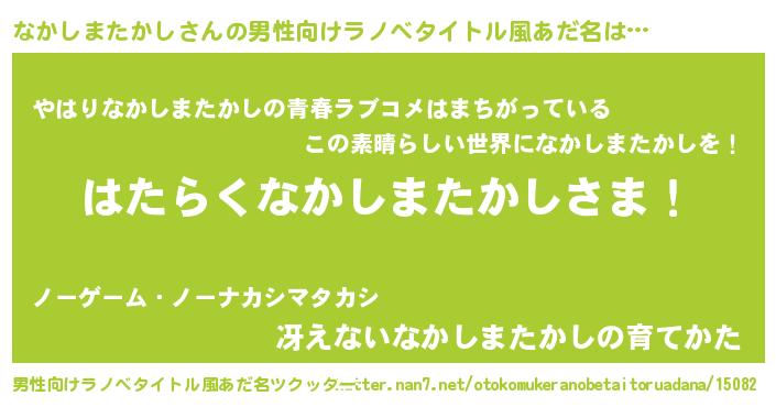 | ファンタジー風あだ名 | 『エターナルナカシマタカシー』 |
