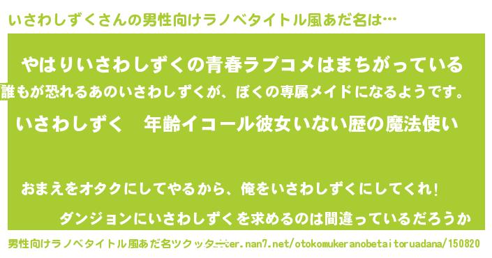 | 女子向けラノベタイトル風あだ名 | 『いさわしずくの玉の輿計画!』 |