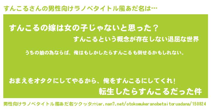 | 女子向けラノベタイトル風あだ名 | 『すんこるの婚約者』 |