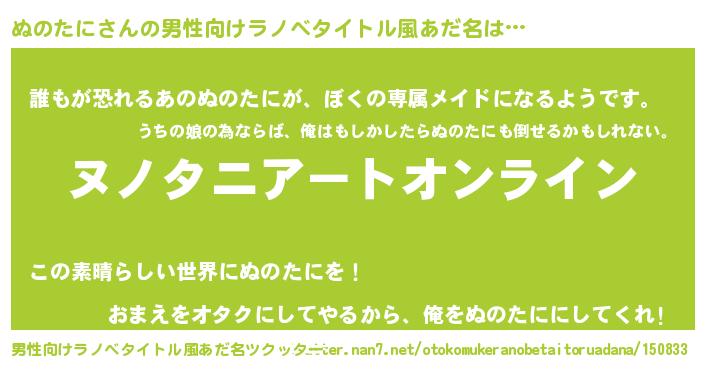 | 胡散臭い通販商品みたいなあだ名 | 『億万長者になれる水晶球…その名も「ぬのたに」』 |