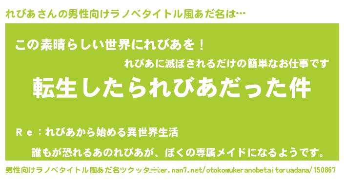 | ヘコむあだ名 | 『れびあ(笑)』『れびもー』『れびを』 |