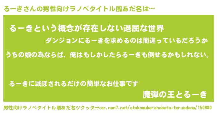 | 女子向けラノベタイトル風あだ名 | 『るーきの婚約者』『るーきは平凡を望む』 |