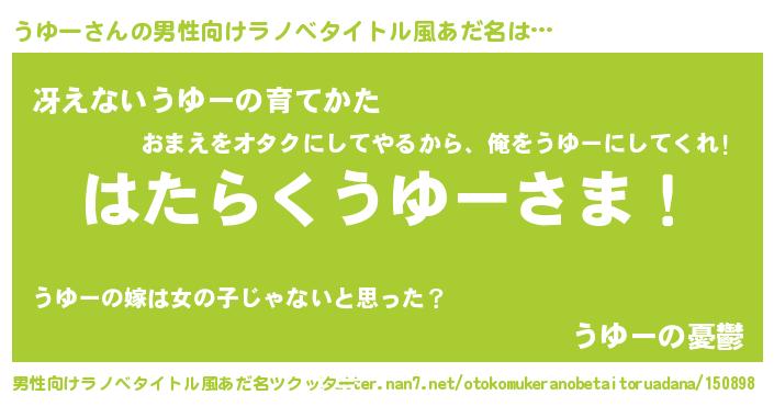 | 胡散臭い通販商品みたいなあだ名 | 『必ず成功する霊験あらたかなお札…その名も「うゆー」』 |