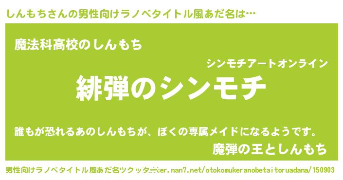 | 女子向けラノベタイトル風あだ名 | 『シンデレラしんもち家の靴箱館』 |