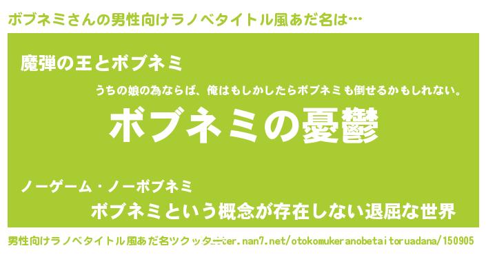 | 意味不明あだ名 | 『ペロリンボブネミ』『永久保存ボブネミ』 |
