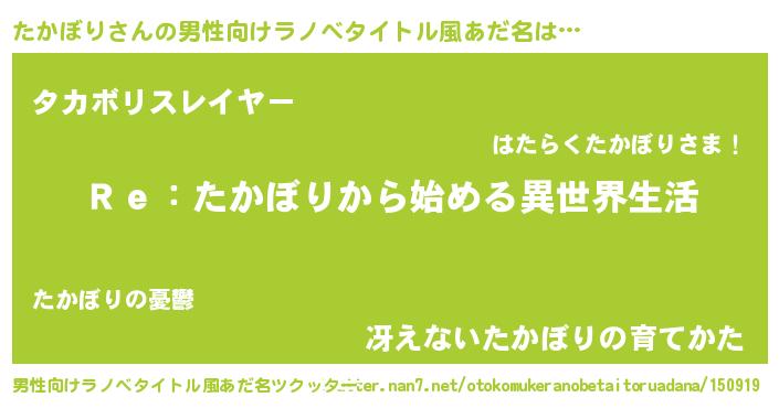| 女子向けラノベタイトル風あだ名 | 『たかぼりストレイドッグス』 |