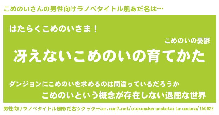| ヘコむあだ名 | 『こめのい(苦笑)』『こめもー』 |
