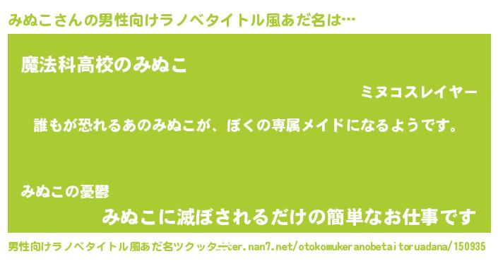 みぬこさんの男性向けラノベタイトル風あだ名をツクッター!