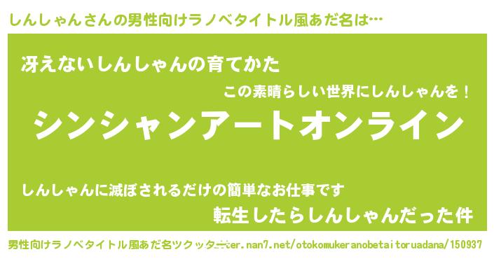 | ヒーロー風カッコイイあだ名 | 『スーパーシンシャン』『仮面シンダー』 |