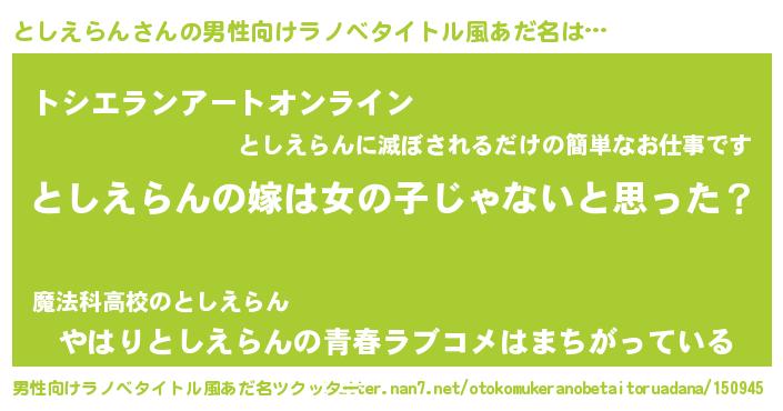 | 女子向けラノベタイトル風あだ名 | 『としえらんの卵を拾いまして』 |