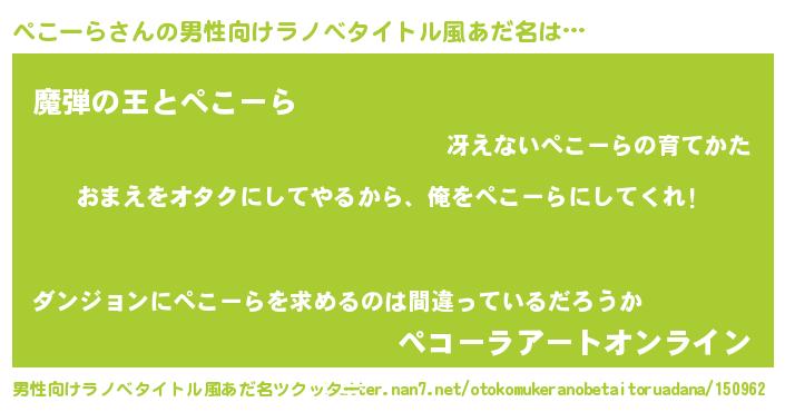 | 女子向けラノベタイトル風あだ名 | 『ぺこーら夫妻のなれそめ』 |