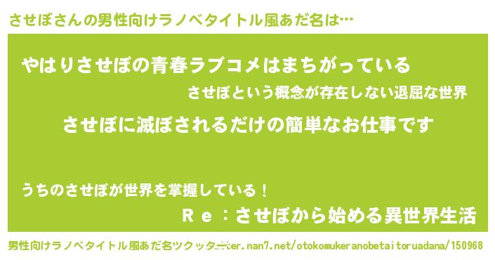 | ファンタジー風あだ名 | 『エターナルサセボー』『ゼサセトゥ』 |
