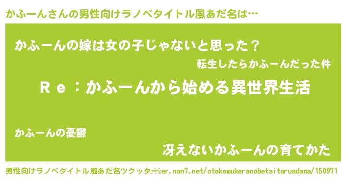| 意味不明あだ名 | 『自称かふーん』『もやし科かふーん属』 |