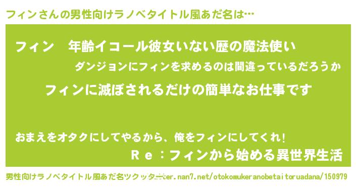 | 女子向けラノベタイトル風あだ名 | 『横柄フィンと宰相陛下』『闇のフィン』 |