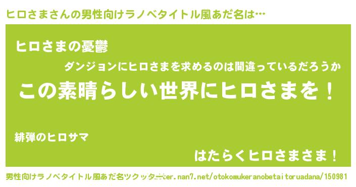 | ヒーロー風カッコイイあだ名 | 『仮面ヒロダー』『スーパーヒロサマ』 |