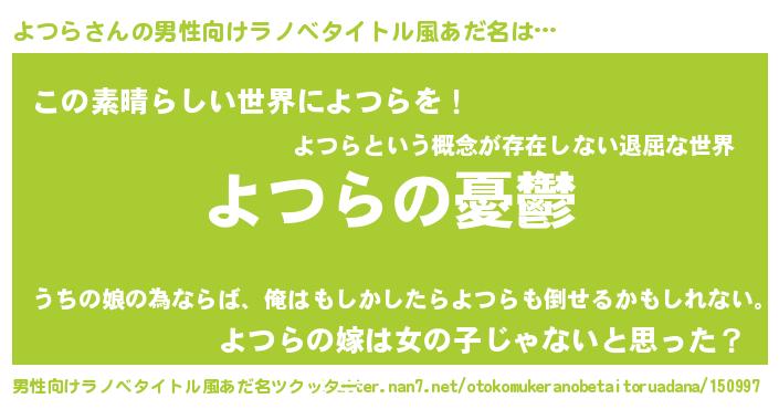 | 胡散臭い通販商品みたいなあだ名 | 『必ず成功する霊験あらたかなお札…その名も「よつら」』 |