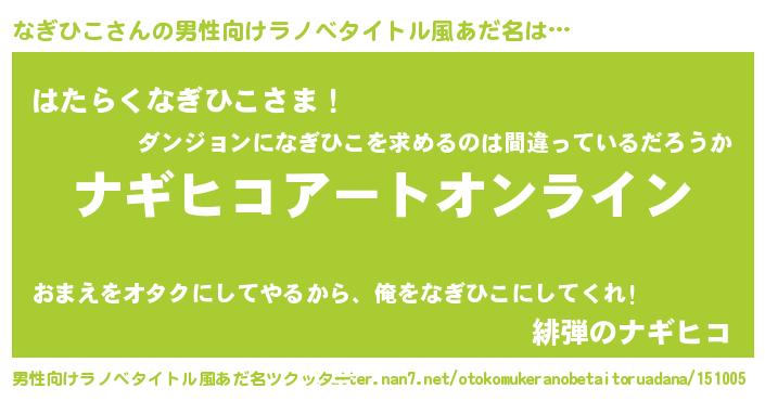 | 女子向けラノベタイトル風あだ名 | 『なぎひこ姫と円卓の騎士』 |