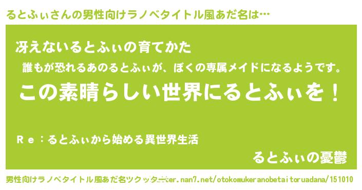 るとふぃさんの男性向けラノベタイトル風あだ名をツクッター!