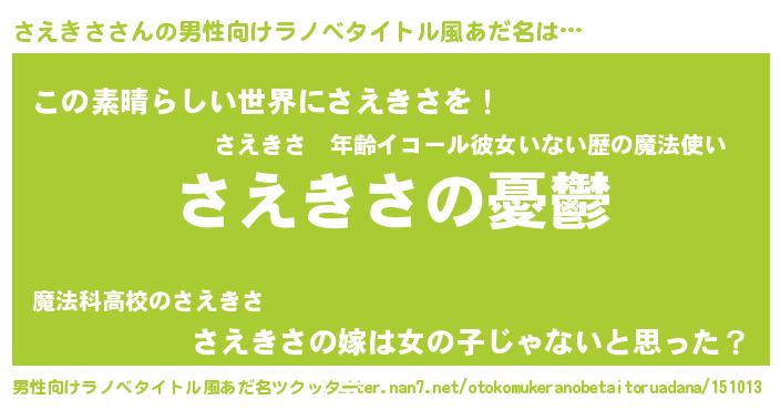 | 胡散臭い通販商品みたいなあだ名 | 『モテモテ間違いなし霊験あらたかなお札…その名も「さえきさ」』 |
