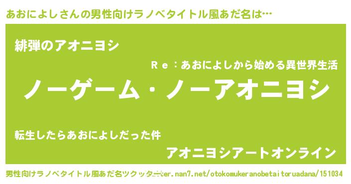 | ヘコむあだ名 | 『あおにゅー』『あおによし(小並感)』 |