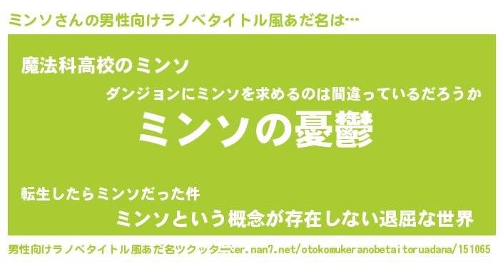 | 胡散臭い通販商品みたいなあだ名 | 『必ず成功する霊験あらたかなお札…その名も「ミンソ」』 |