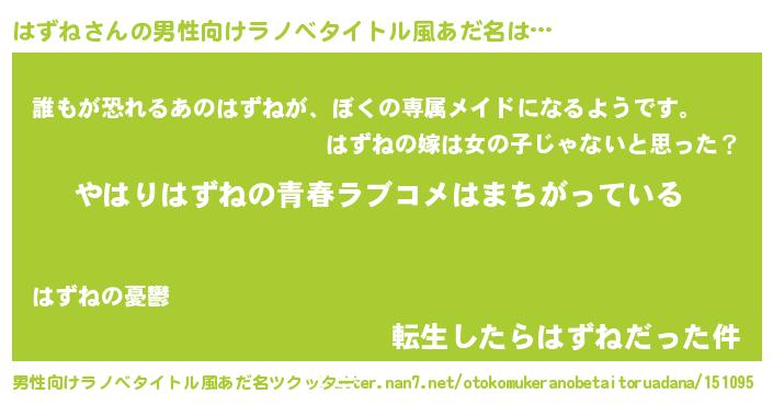 | 女子向けラノベタイトル風あだ名 | 『はずね伯爵の花嫁』 |