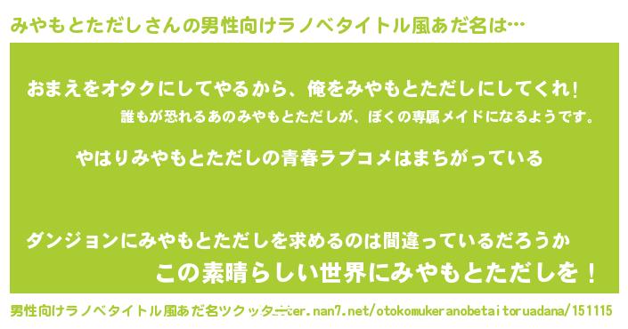 | 女子向けラノベタイトル風あだ名 | 『みやもとただしの雑貨屋さん』 |