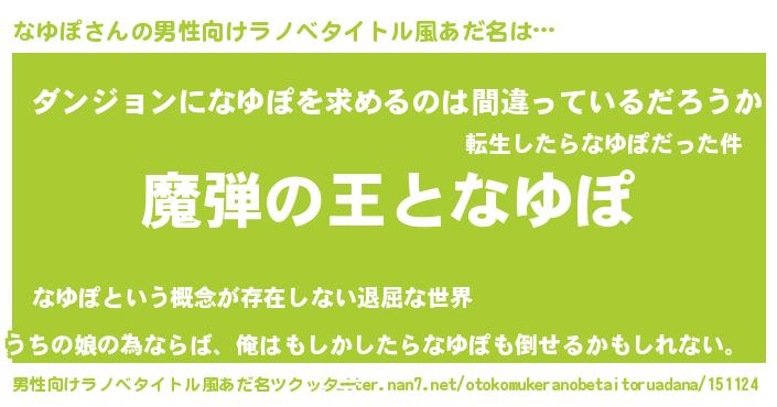 | 胡散臭い通販商品みたいなあだ名 | 『ハリウッド女優が絶賛した100年もののヴィンテージワイン…その名も「なゆぽ」』 |