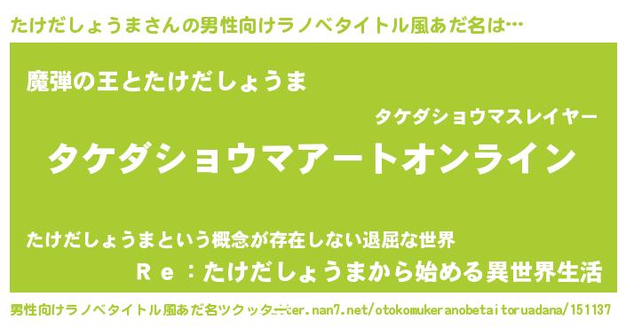 | 女子向けラノベタイトル風あだ名 | 『誰かこのたけだしょうまを説明してください! ~契約から始まるウェディング~』 |