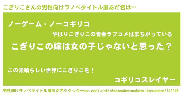 | 女子向けラノベタイトル風あだ名 | 『こぎりこ様がみてる』『こぎりこ恋絵巻』 |