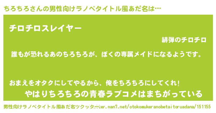 | 意味不明あだ名 | 『永久保存ちろちろ』『自称ちろちろ』 |