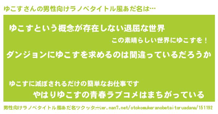 | 女子向けラノベタイトル風あだ名 | 『ゆこすは平凡を望む』 |