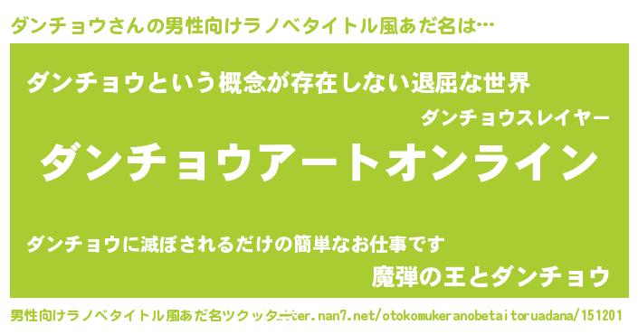 ダンチョウさんの男性向けラノベタイトル風あだ名をツクッター!